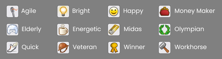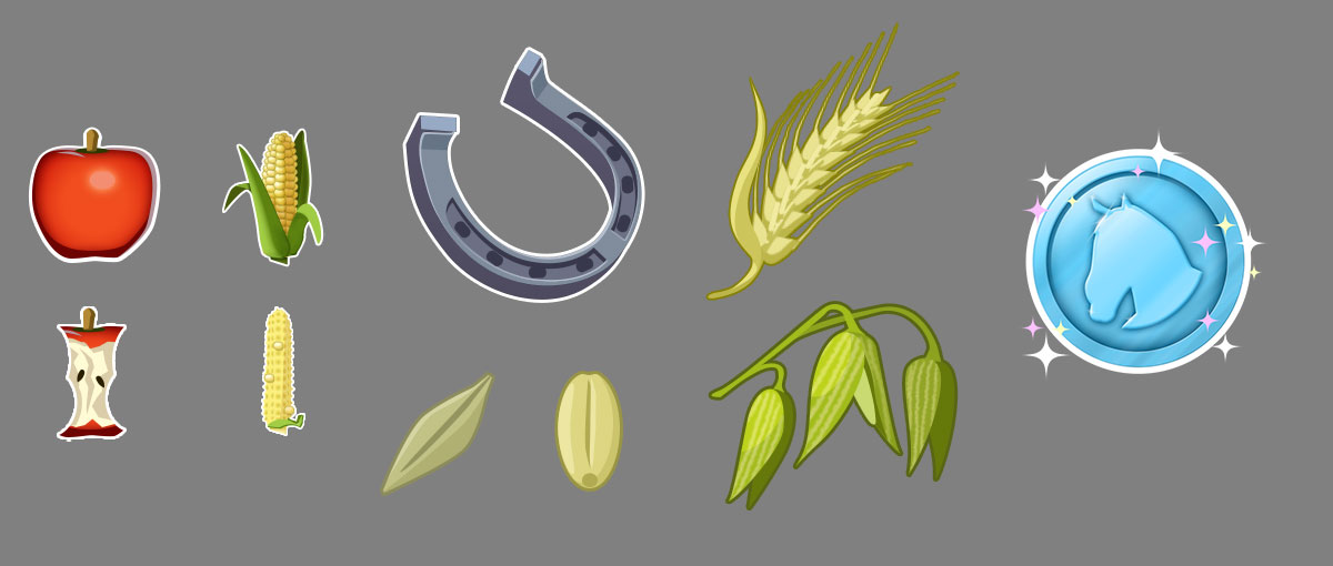 I had a ton of fun creating icons for the game. This included both icons for the various in-game resources as well as traits for the horses. Players were able to breed horses and doing so allowed them to pass traits on to their offspring.